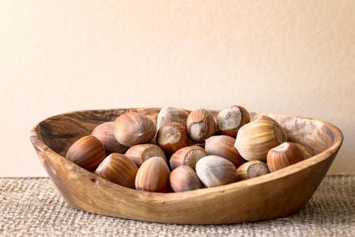 榛子又名山板栗,榛子果实口味好,营养丰富,其果仁含油量 47~68%,蛋白质 23%,脂肪 56~65%,淀粉 6.6%,还含有维生素 A、B、E 以及铁、钙等矿质元素。榛仁的营养成分为面包的 2 倍,猪肉的 1.5 倍,可应用于糖果点心、医药及香料制造业中,由榛子提取的制剂,具有消炎、防腐和扩张血管的作用,用于治疗高血压、动脉粥样硬化、肝脏及肾脏疾患。